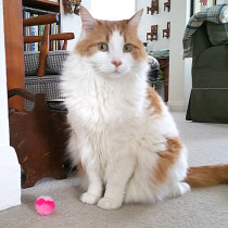 Archie’s favorite pink fluffball.
