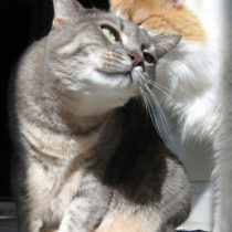 Archie grooms Sophie in the sunshine.