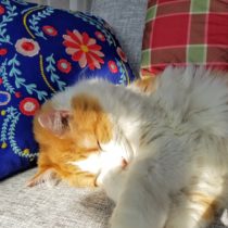 Archie can always find the sunniest spot, even if it’s only the size of his nose.