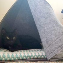 Greg in the kitty tent.