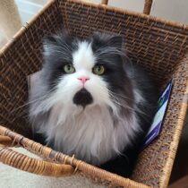 Leonardo in the recycling basket. Believe it or not, this guy is a rescue!